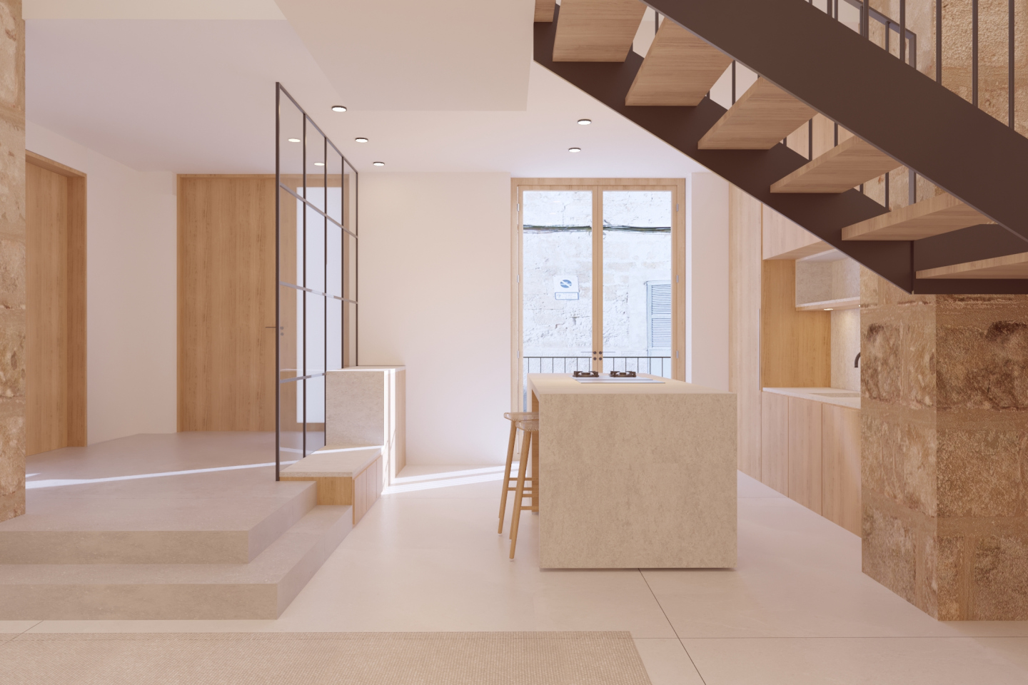 Amb possibilitat d’adaptar l’espai per a dos habitatges, composta per una casa principal i un apartament.